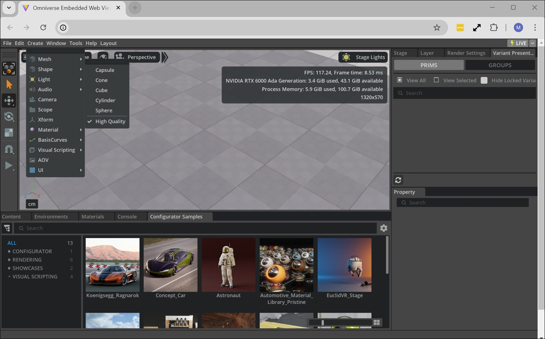 Connect to the Kit App Locally Streaming Using the Web Viewer Sample#
