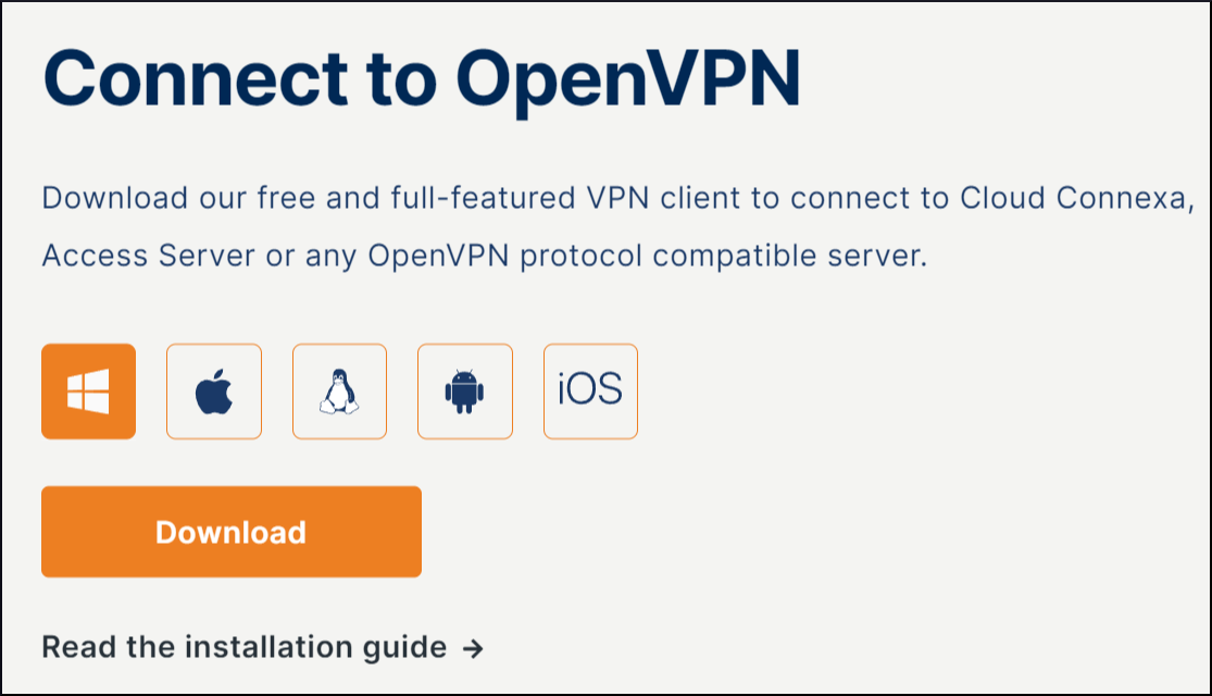 Visit OpenVPN and download and install the OpenVPN client software on your workstation.