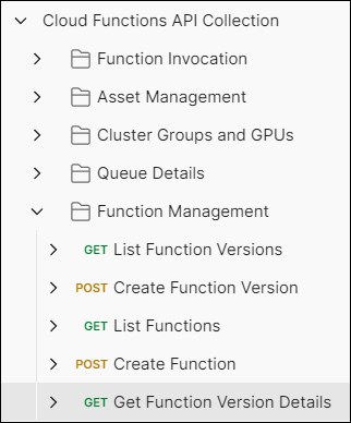 Expand Cloud Functions API Collection, then expand Function Management and click Get Function Version Details: